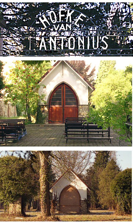 Hofke, dat vroeger deel uitmaakte van de kloostertuin van de franciscanen aan de Sittarderweg. Via een poort is het Hofke toegankelijk vanaf de openbare weg. Een pad voert langs dertien terracotta staties met scènes uit Antonius' leven. Het klooster van de franciscanen is in 1995 gesloopt; de kloosterkerk werd toen aan de eredienst onttrokken. Het Antoniushofke bleef evenwel bestaan. Het oorspronkelijke Antoniusbeeld was uit hout gesneden en ongepolychromeerd. Antonius staat in een contrapost houding met het Jezuskind aan zijn rechterzijde. Zijn gebruikelijke attribuut, de lelietak, ontbreekt. Het beeld stond in 1996 in de H. Geestkerk van Heerlen-Meezenbroek. Het werd vervaardigd door de Maastrichtse kunstenaar Charles Vos. Het nieuwe cultusbeeld in de kapel is een circa één meter hoog, gepolychromeerd, gipsen Antoniusbeeld. - In het altaar van de kapel is weliswaar een reliek van Antonius ingemetseld Het Antoniushofke was bekend in geheel katholiek Nederland, getuige vier pakken met gebedsintenties uit de jaren 1940-1943, die zich in het parochiearchief bevinden.- Op 16 maart 1952 werden vernielingen aangericht in het Hofke. De hoofden van de personages op de Antoniusstaties waren afgeslagen. De pers maakte melding van dit feit, hetgeen ertoe leidde dat de belangstelling voor het Antoniushofke weer enigszins toenam in het park staan 13 terracotta staties die scènes uit het leven van Antonius tonen. De staties zijn vervaardigd door Charles Vos. Een aantal staties is geschonken uit dankbaarheid jegens Antonius. In de kapel bevinden zich drie votiefplaquettes met dankbetuigingen.Het kapelletje werd gebouwd in 1938-39 door de paters Minderbroeders met hulp van vele vrijwilligers en op 2de Paasdag 16 April 1939 ingezegend door Mgr. Dr. G. Lemmens Bisschop van Roermond. Het Antonius beeld is van de hand van de kunstenaar Charles Vos. De kerk is intussen afgebroken en het patronaat gerenoveerd en tot theater verbouwd, de tuin zou gerestaureerd en voor het publiek open gesteld worden. De kapel is in afwachting hiervan dicht getimmerd. Aan de achter kant van het kapelletje was een prachtig kruisbeeld aangebracht, helaas is dat gestolen op 30-09-1998 Bron en Foto's: www.harriekuijpers.nl
